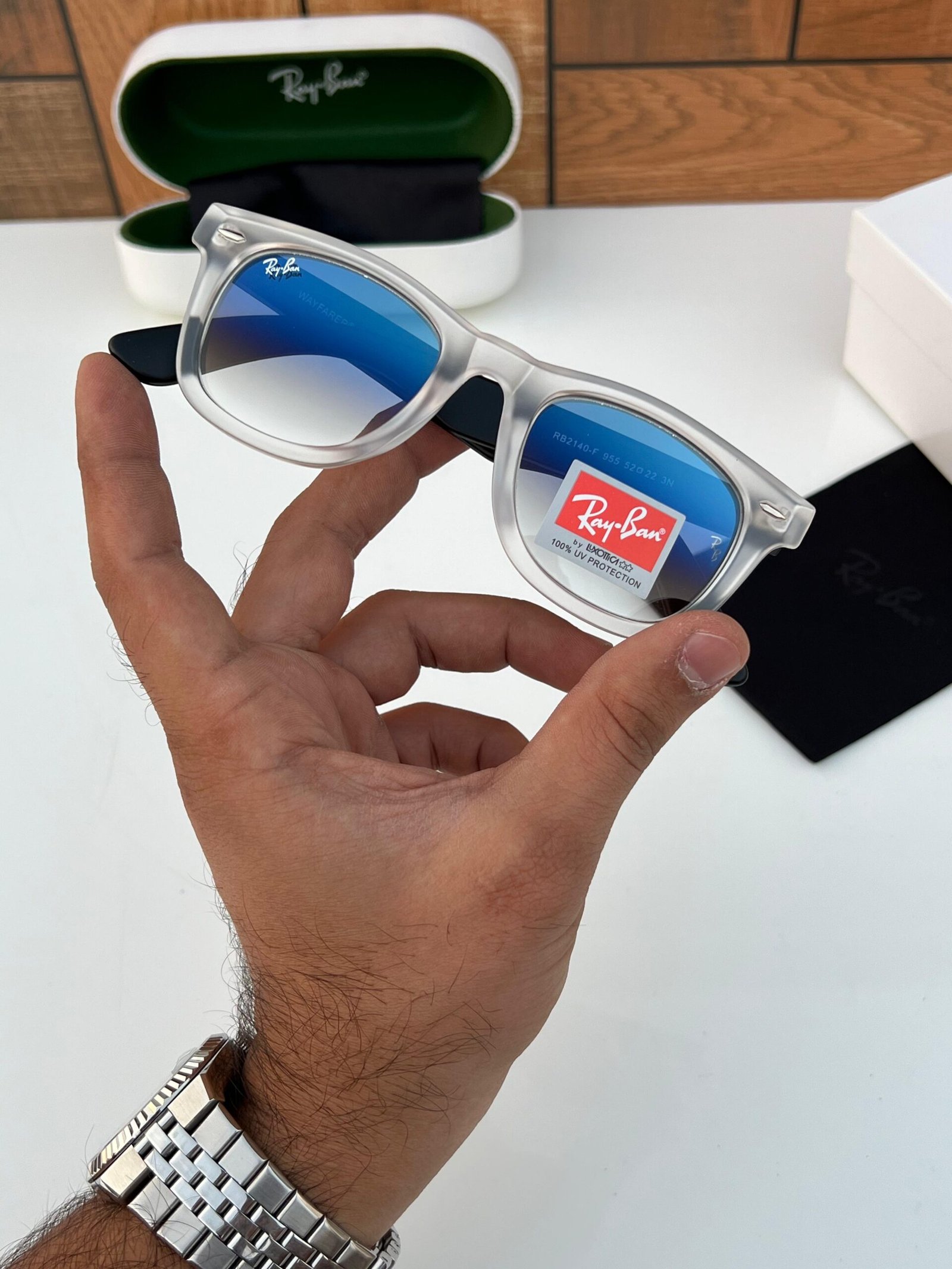 Rayban 2140 white blue shaded